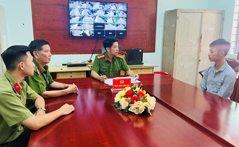 Công an xã Cư Ê bur, TP Buôn Ma Thuột, đang lấy lời khai đối tượng Đặng Đức Anh.