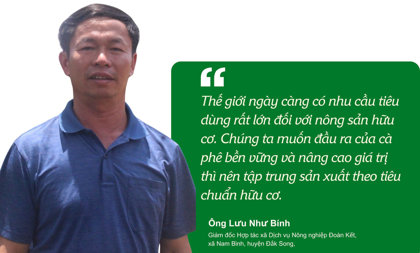 Đối với HTX Đoàn Kết, thành viên được hướng dẫn kỹ thuật làm cà phê hữu cơ và thực tế chi phí đầu tư thấp hơn so với sản xuất vô cơ, chất lượng, năng suất ổn định 4 tấn/ha. Hiện tại, HTX đang xây dựng bộ kỹ thuật sản xuất, chế biến cà phê hữu cơ. Người dân, thành viên rất tích cực hưởng ứng.