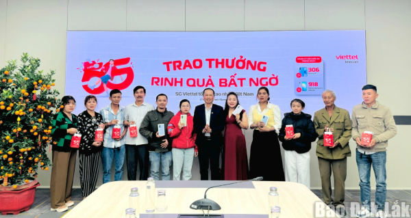Ngày 13/2, Viettel Đắk Lắk tổ chức trao thưởng cho những khách hàng may mắn trúng giải trong chương trình khuyến mại “Lướt 5G rinh quà bất ngờ”.